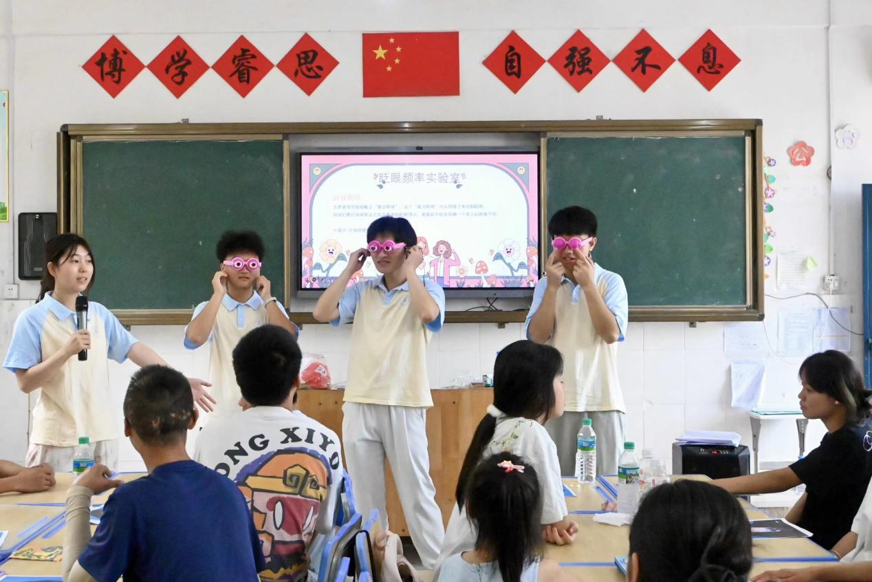 控制根基道理后,创电将来”三下乡实践队奔赴赣州市赣县区大埠乡,为村落儿童看得见、摸得着的科普体验。手把手指点操做,孩子们亲手毗连电池、开关取小灯胆。面临“小车为什么会本人拐弯?”的疑问,队员们将传感器比做“眼睛”倾斜,